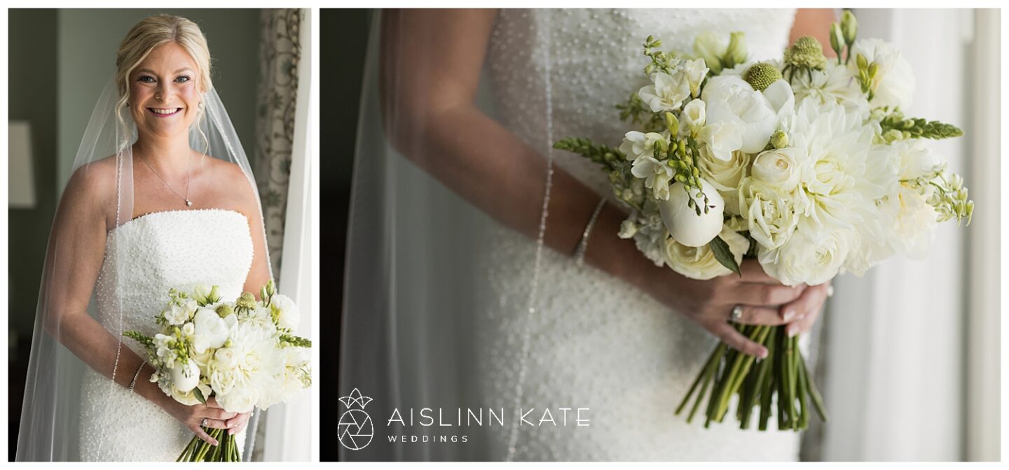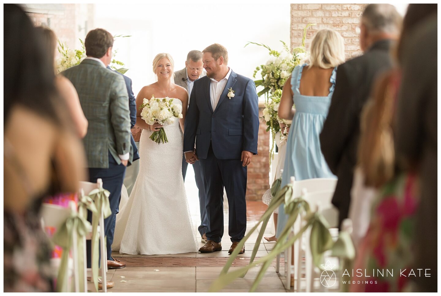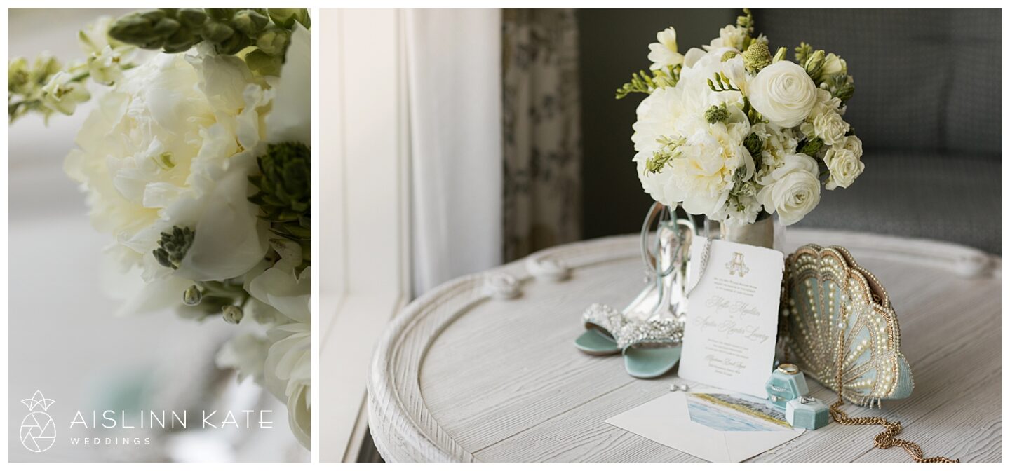 The tone for the day was set early with a truly exquisite invitation suite by BluSkies Design. The standout feature was a custom watercolor illustration of The Henderson, beautifully showcased on the envelope liner. Printed on luxurious handmade cotton paper with delicate deckled edges and adorned with gold letterpressed ink, the invitations gave guests an immediate sense of the elegant and coastal ambiance to come.