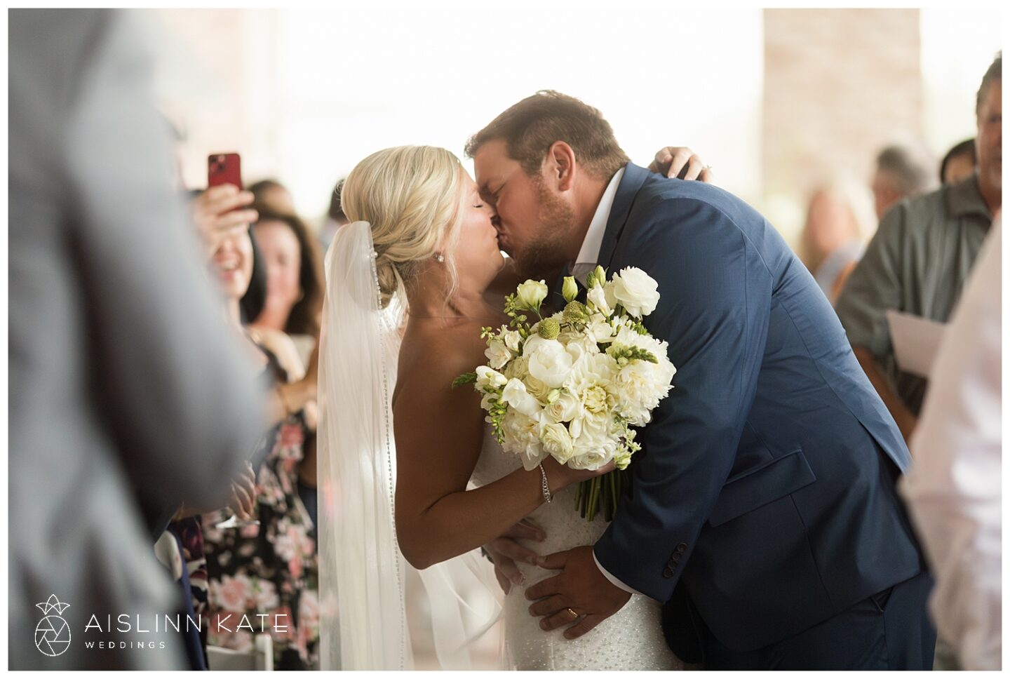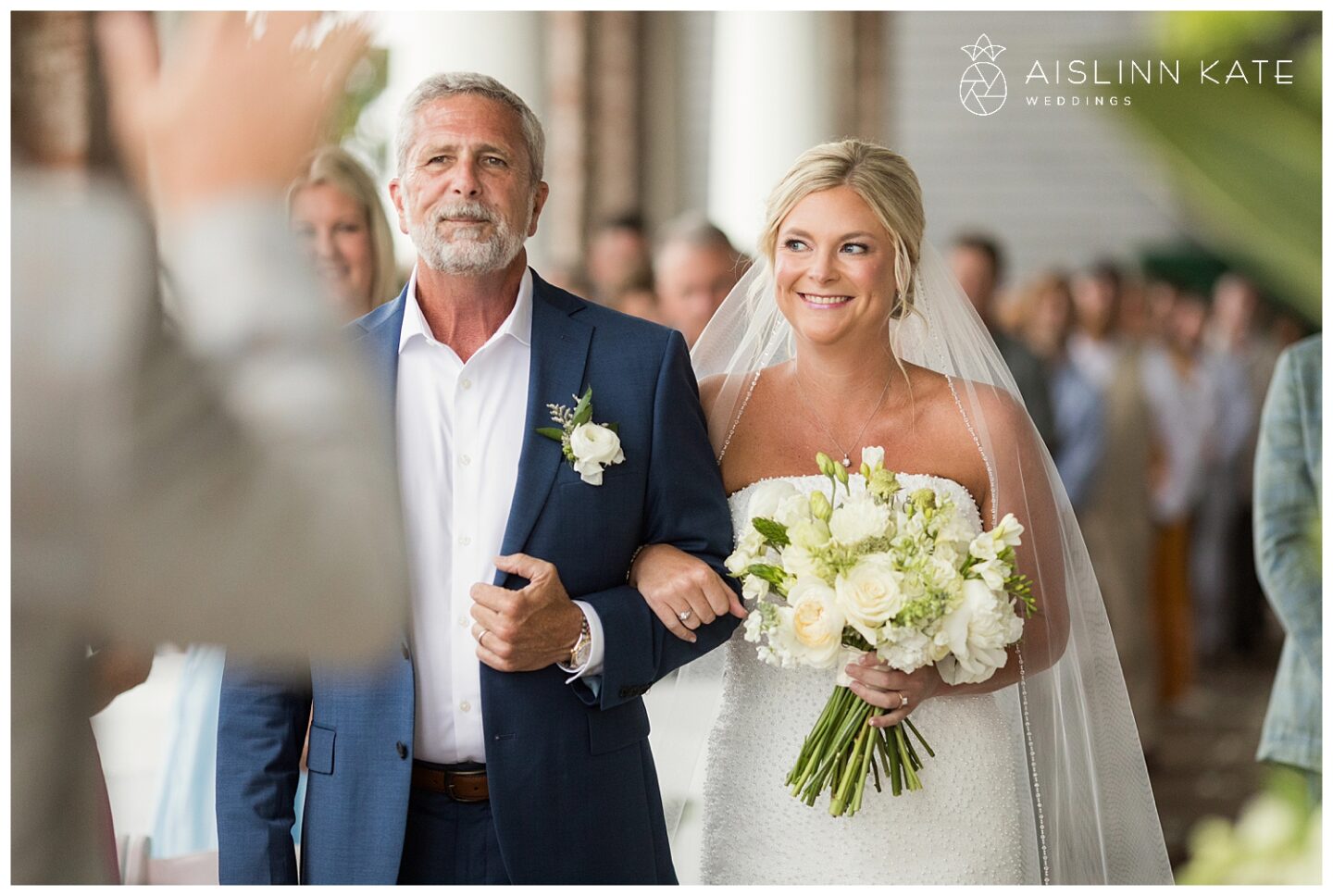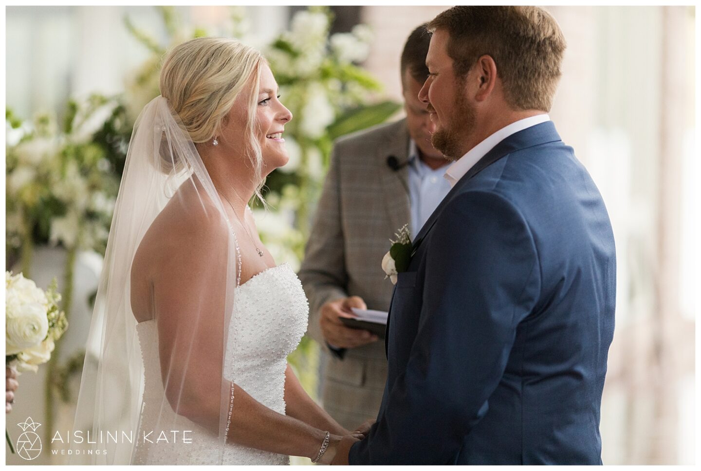 The tone for the day was set early with a truly exquisite invitation suite by BluSkies Design. The standout feature was a custom watercolor illustration of The Henderson, beautifully showcased on the envelope liner. Printed on luxurious handmade cotton paper with delicate deckled edges and adorned with gold letterpressed ink, the invitations gave guests an immediate sense of the elegant and coastal ambiance to come.