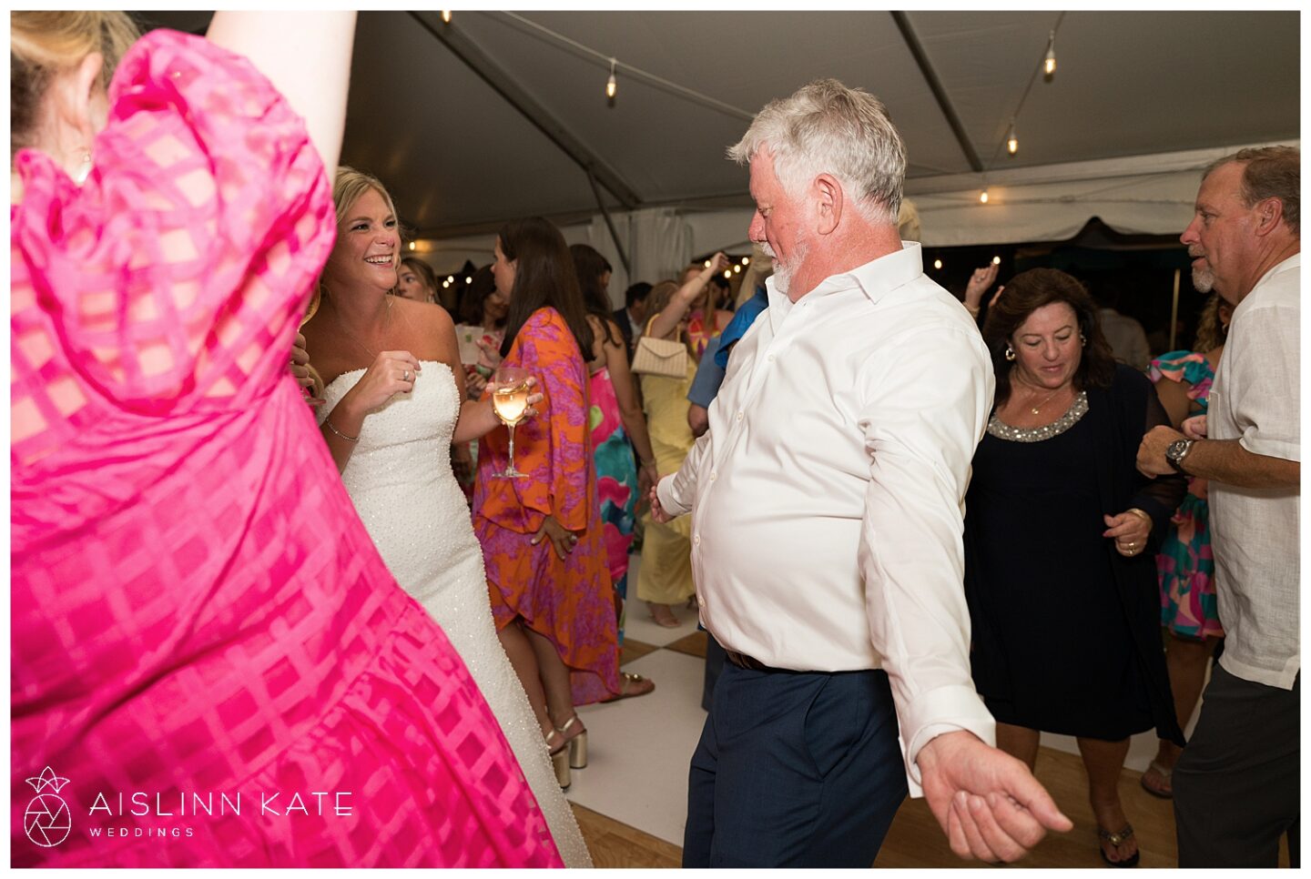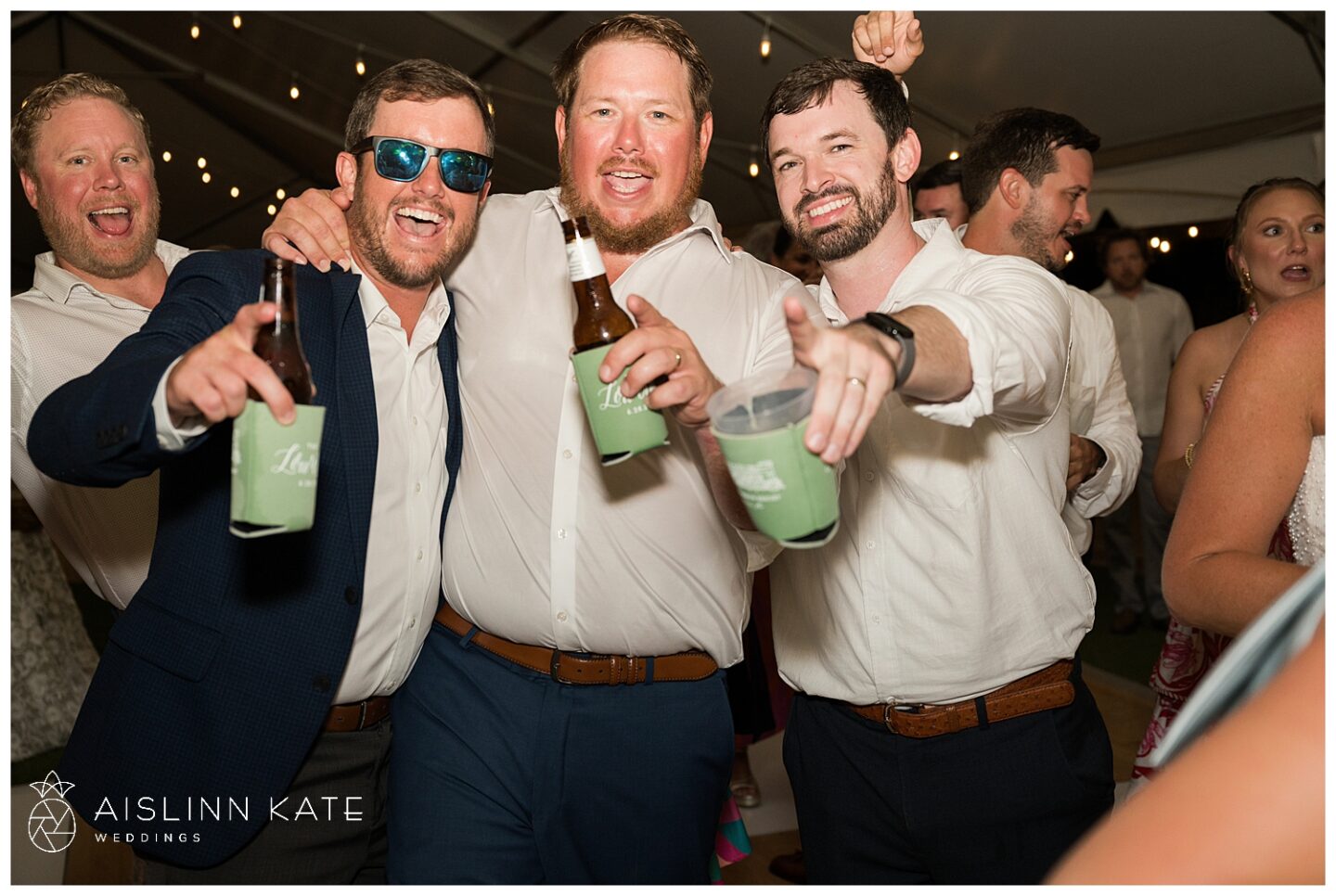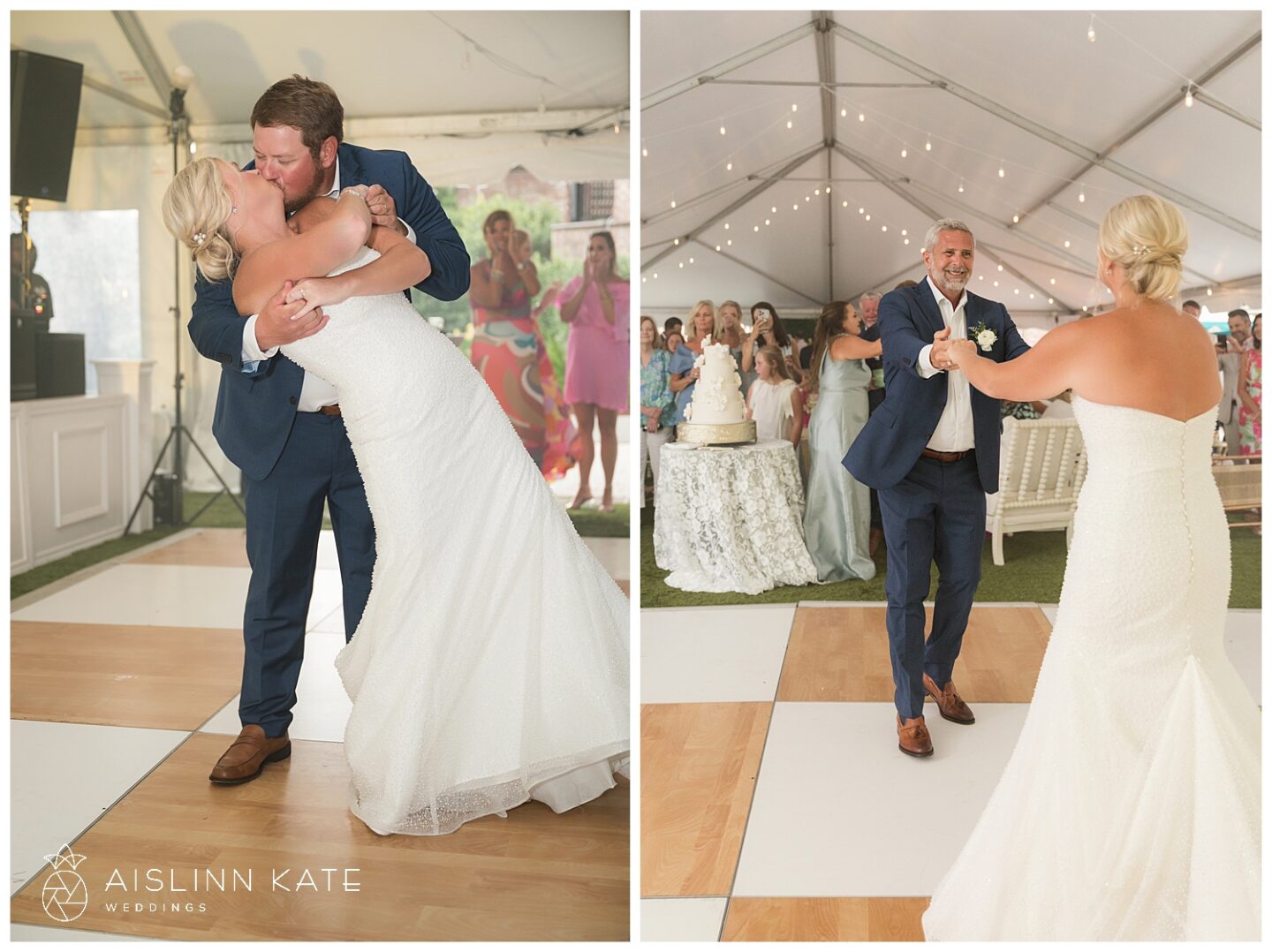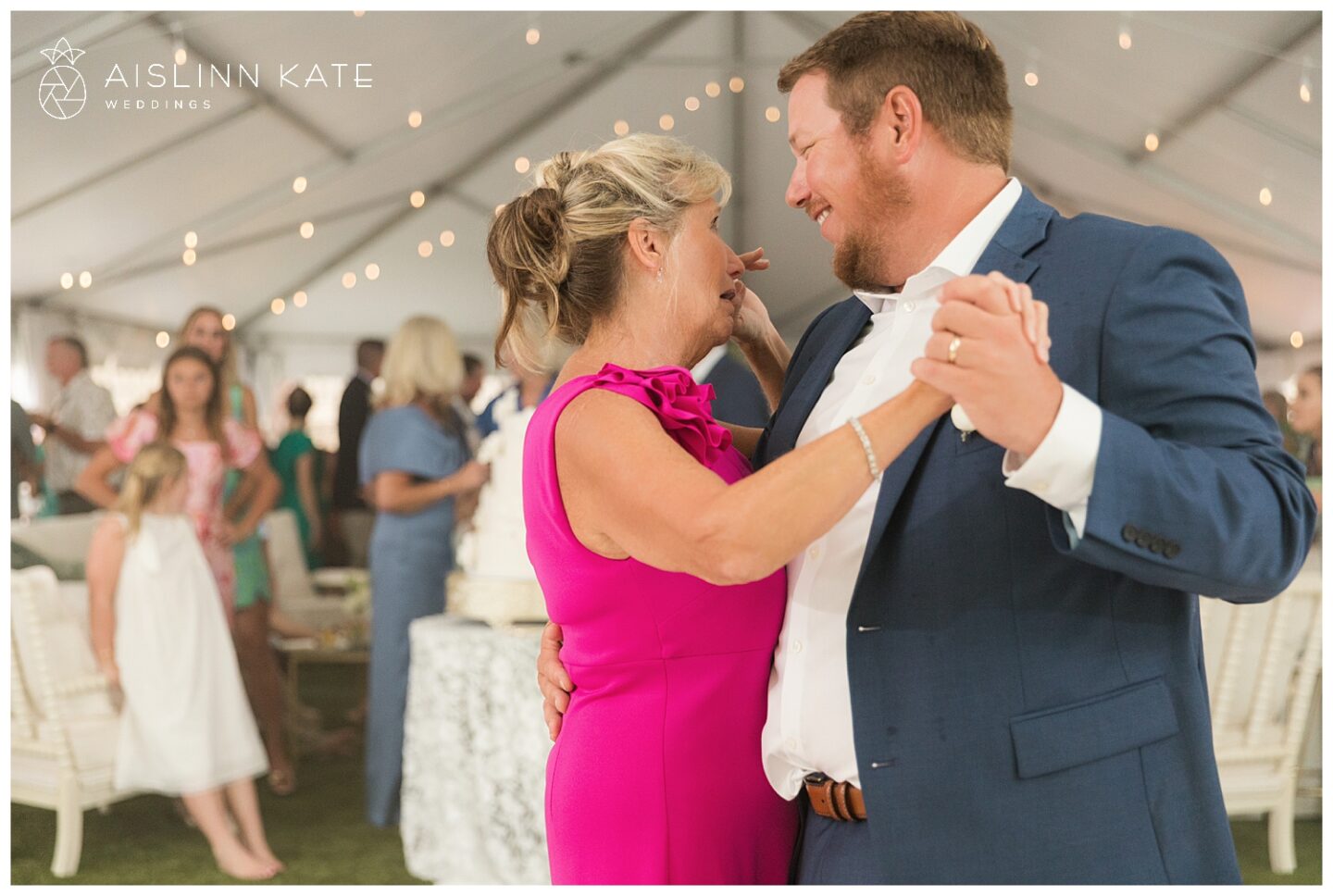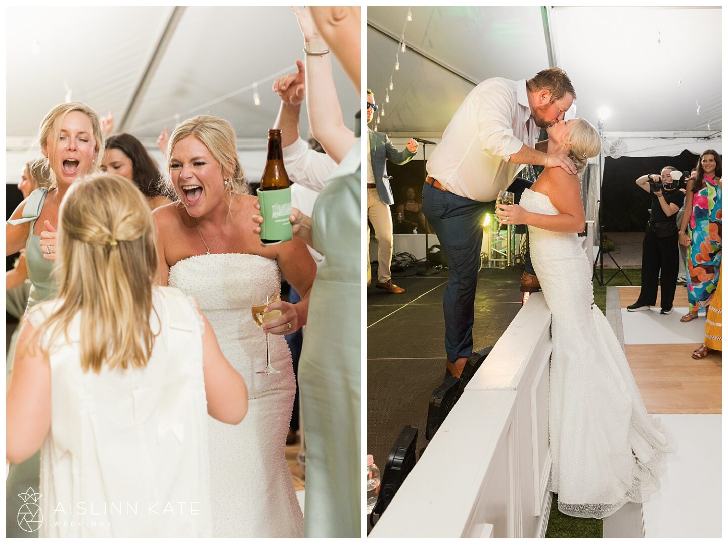 The ceremony and reception took full advantage of the stunning outdoor setting. Under the open-air tent, guests were welcomed to a celebration that felt both intimate and grand. Fresh floral arrangements in creamy whites and soft greens complemented the natural surroundings, while gold accents added a hint of timeless luxury. From the elegant table settings to the coastal-inspired décor, every element was thoughtfully curated to enhance the overall experience.