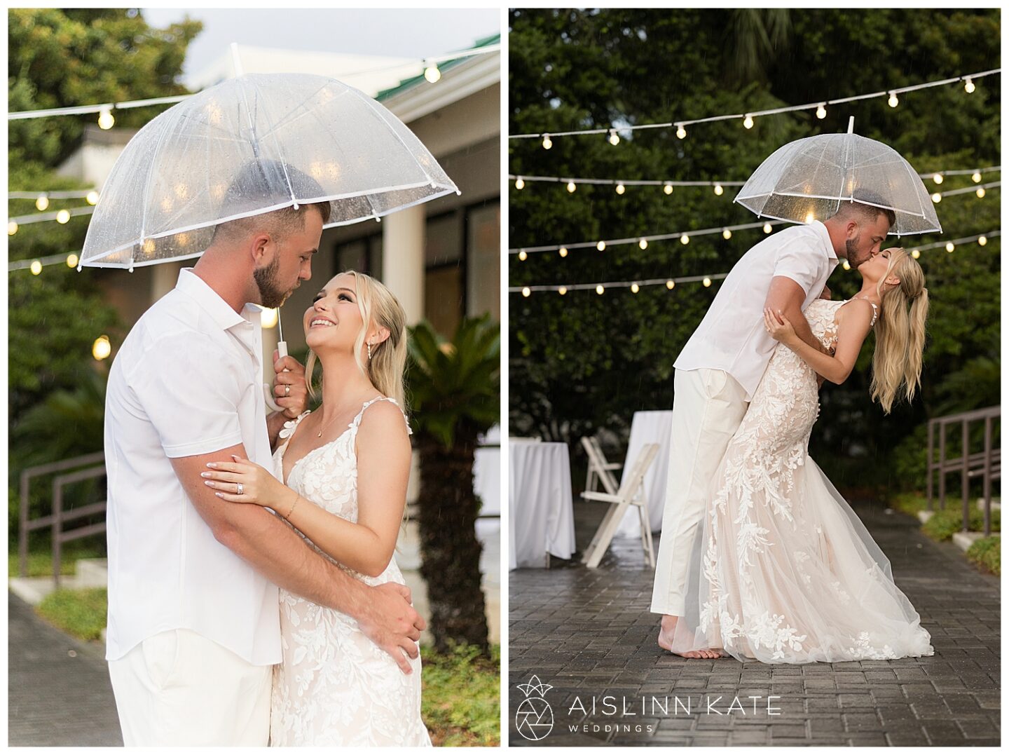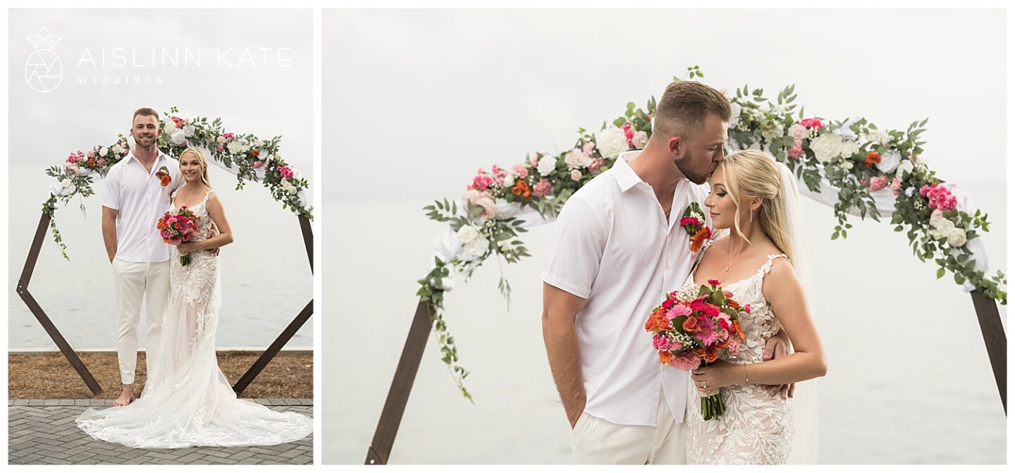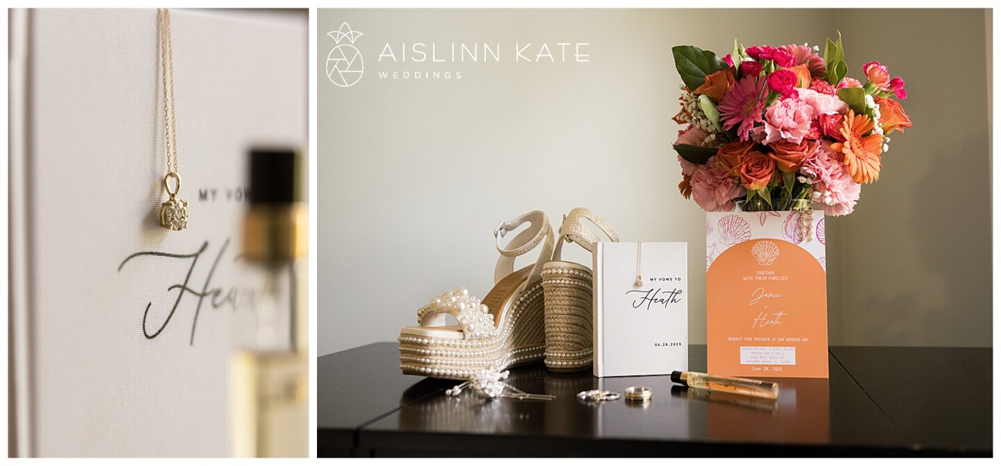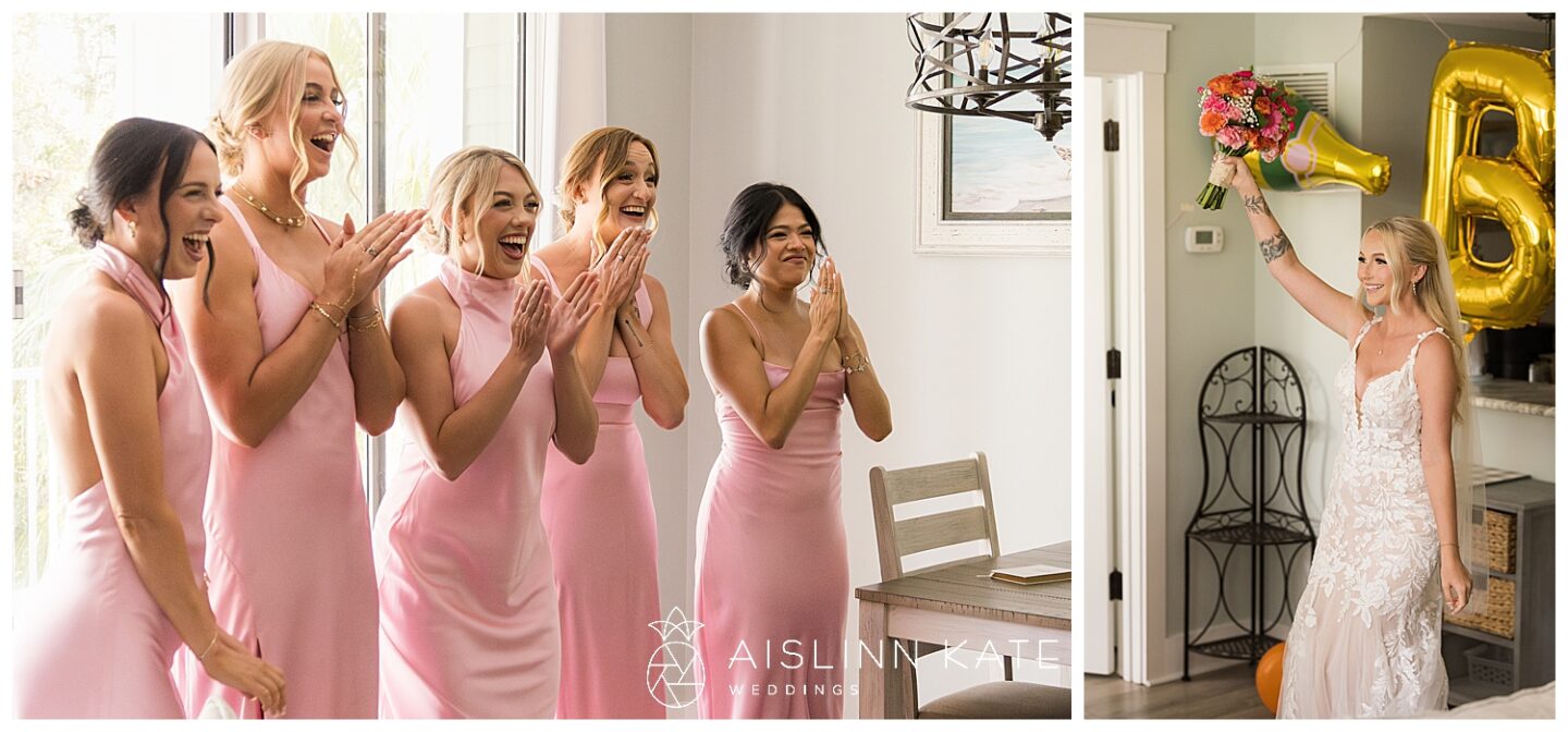 Rain is almost expected when planning a vibrant SanDestin wedding—and Jamee and Heath’s day was no exception. Although the morning started bright and sunny, heavy rain rolled in for a good part of the afternoon. However, it seemed the universe had their back. Just before the ceremony, the skies cleared enough for them to say “I do” outside as planned. Even better, the rain paused again at sunset, giving us the perfect window for dreamy portraits. And as if on cue, the sky cleared one last time for their sparkler exit. Talk about timing!