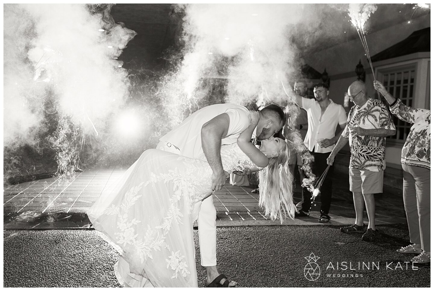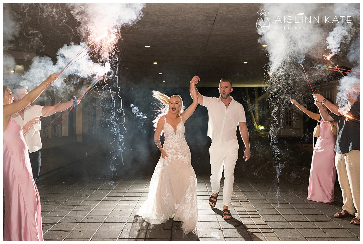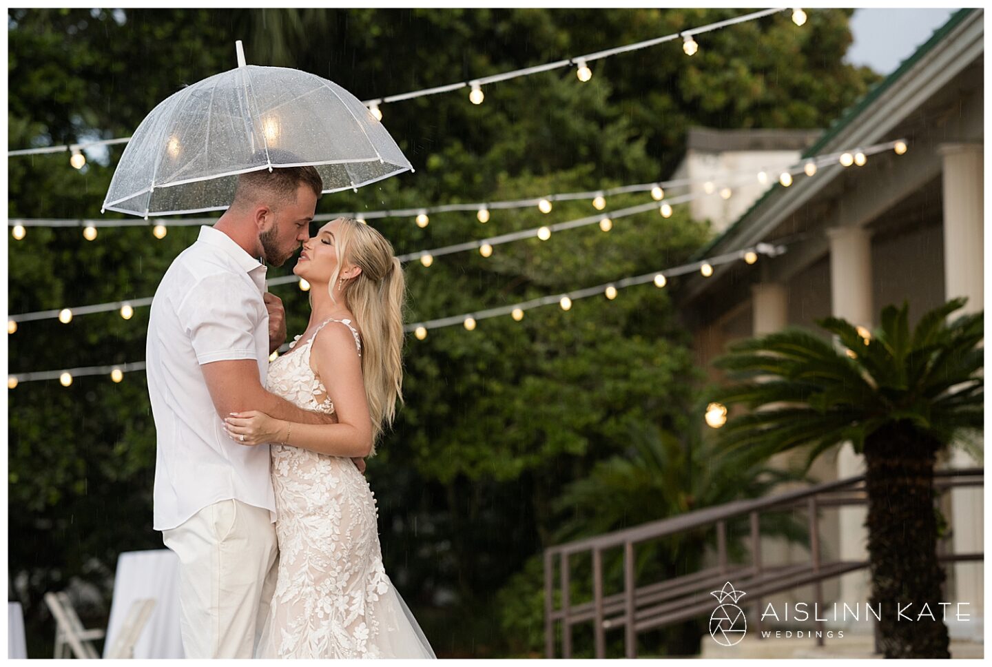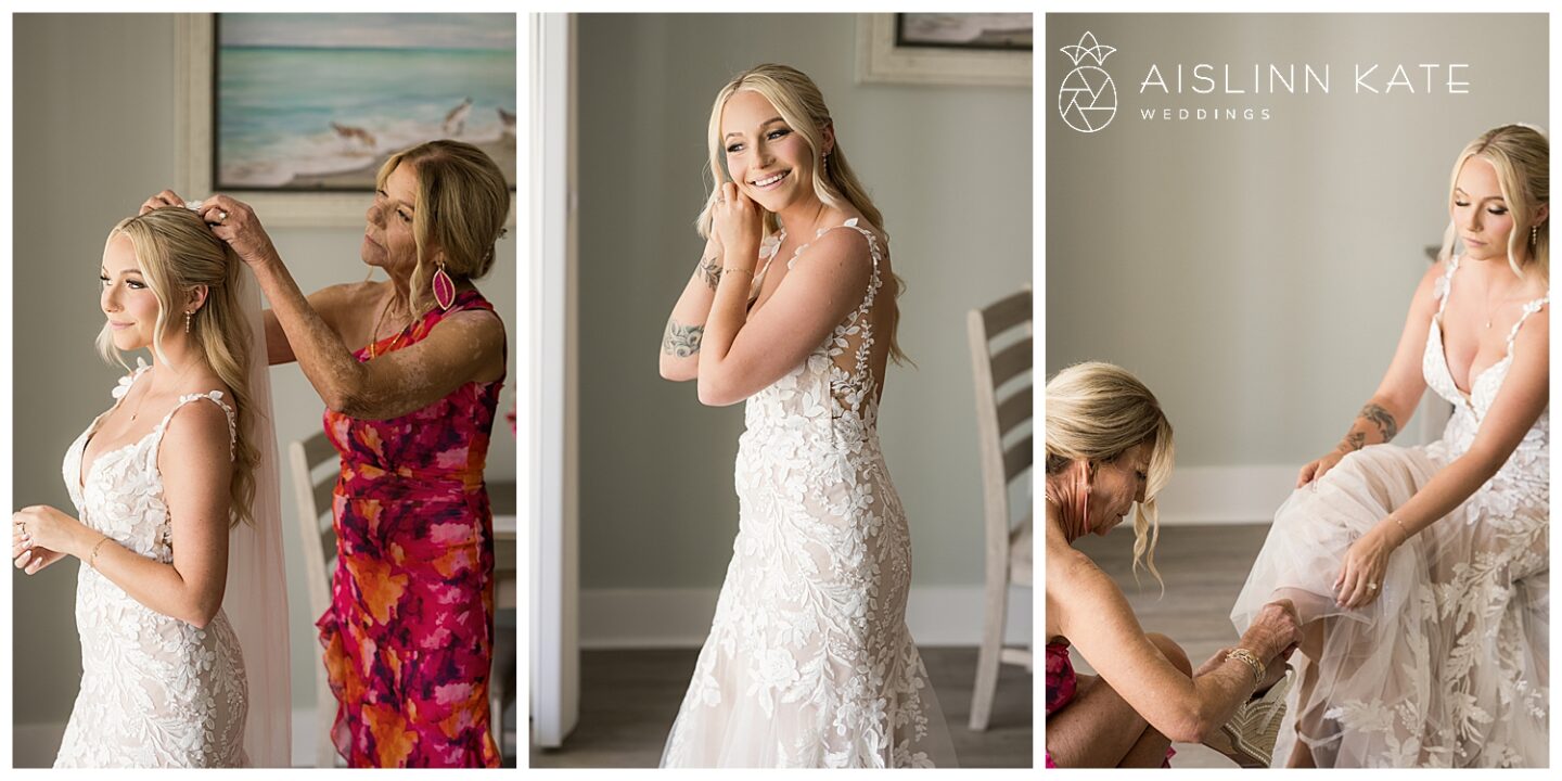 Rain is almost expected when planning a vibrant SanDestin wedding—and Jamee and Heath’s day was no exception. Although the morning started bright and sunny, heavy rain rolled in for a good part of the afternoon. However, it seemed the universe had their back. Just before the ceremony, the skies cleared enough for them to say “I do” outside as planned. Even better, the rain paused again at sunset, giving us the perfect window for dreamy portraits. And as if on cue, the sky cleared one last time for their sparkler exit. Talk about timing!