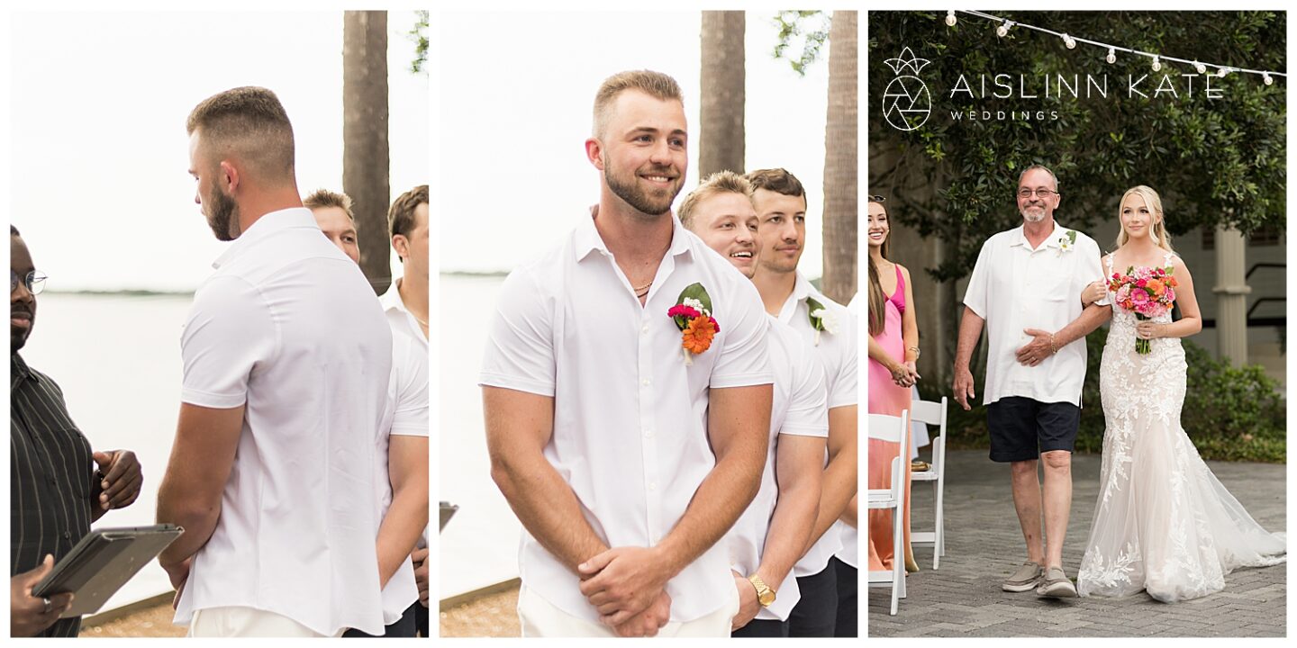 Instead of a traditional first look, Jamee and Heath chose something more personal. Before the ceremony, they shared a quiet first touch and read their vows privately—just the two of them. The moment was tender, emotional, and deeply sincere. Yet nothing compared to the joy on their faces when they finally saw each other down the aisle. That moment was pure magic. Surrounded by loved ones, they locked eyes and knew this was the start of forever at their vibrant SanDestin wedding. It was a moment worth waiting for.