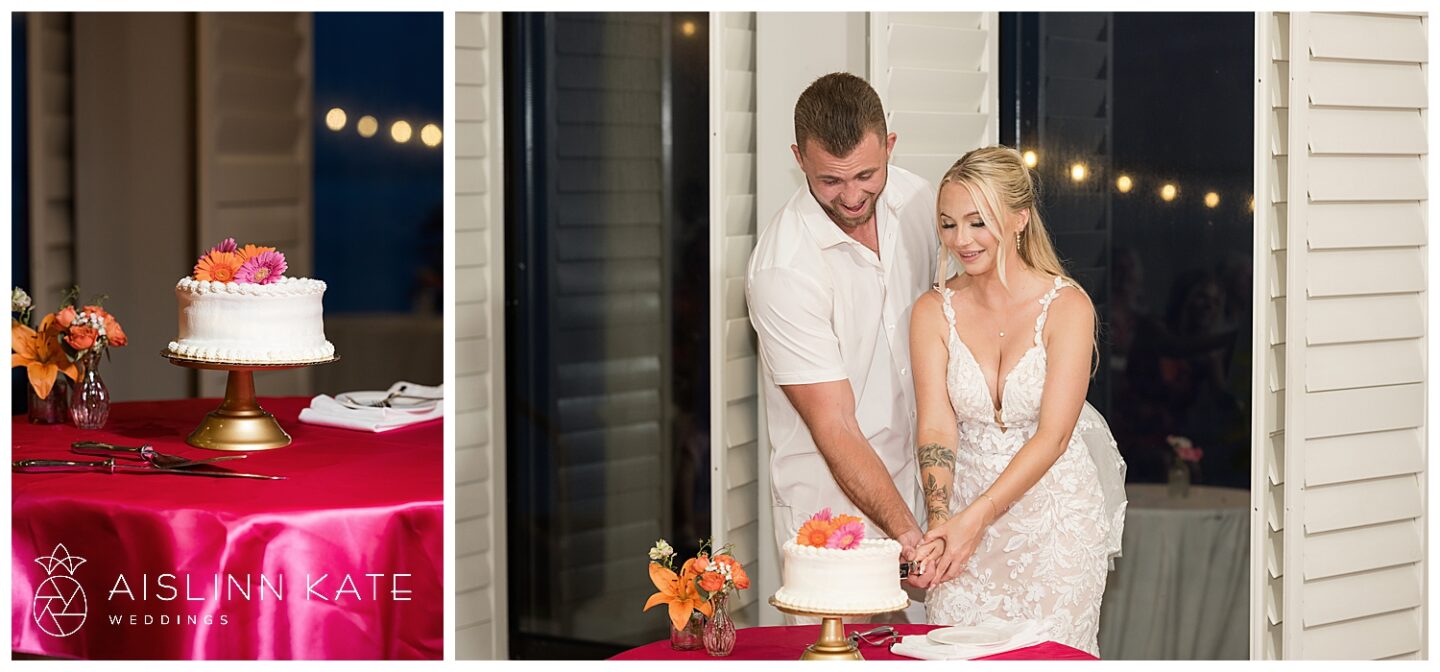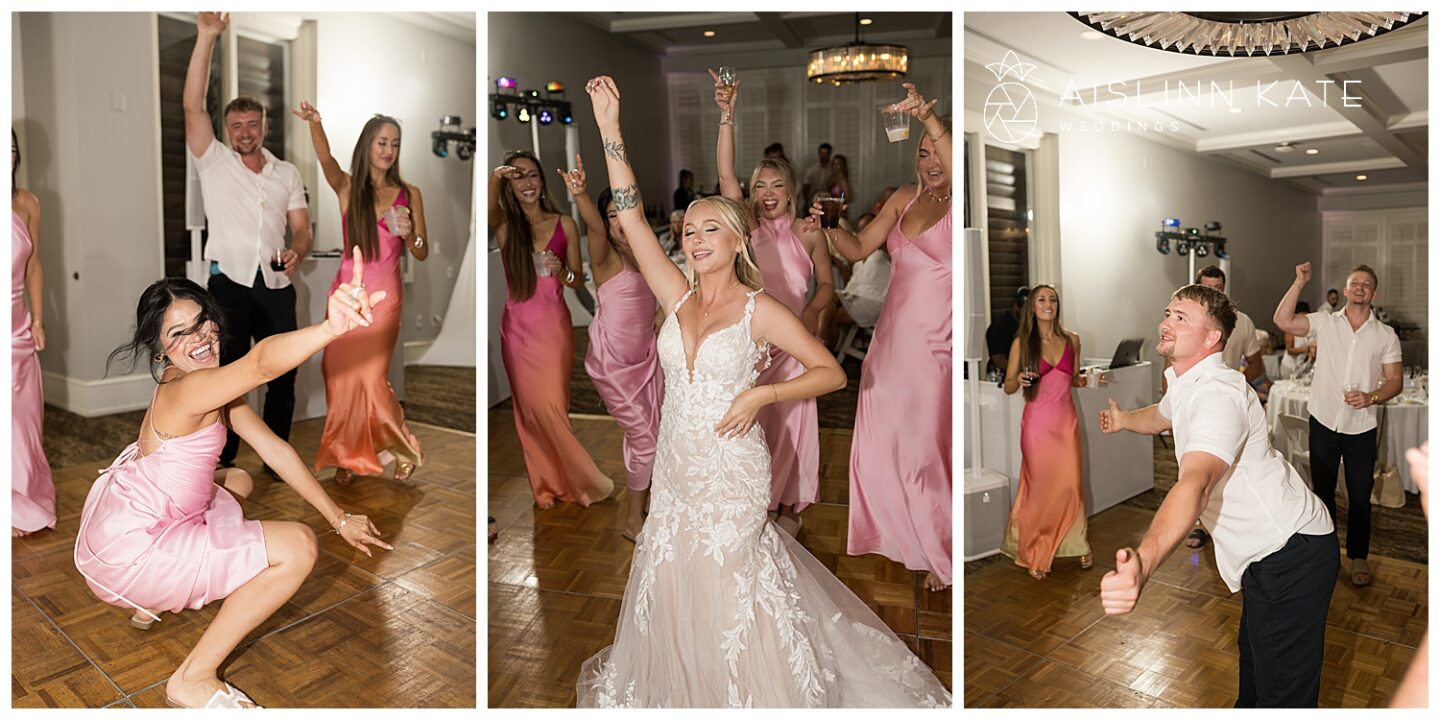 Jamee and Heath fully embraced the early summer season with a bright and cheerful color palette. Their foundation color—a soft, romantic light pink—appeared on the bridesmaids’ dresses and ceremony arbor. To bring in more vibrance, they added bold pops of hot pink, red, and orange in the florals and reception decor. These striking accents brought warmth and energy to the entire day. Best of all, the couple stood out beautifully in their crisp white outfits, letting the colors shine around them without distraction. It was fresh, fun, and completely them.