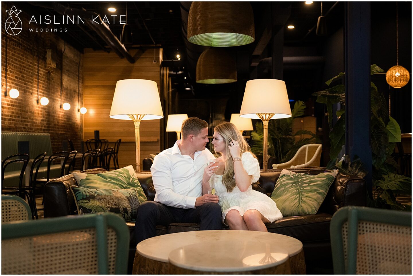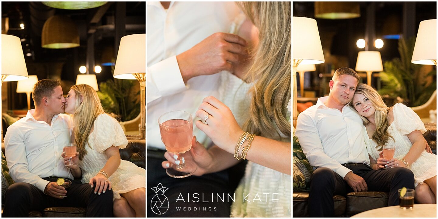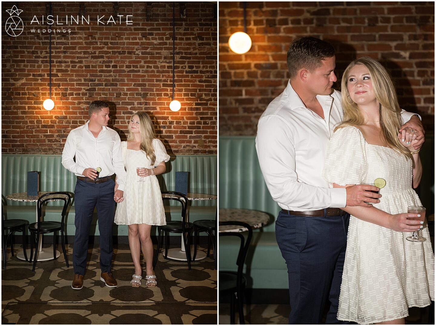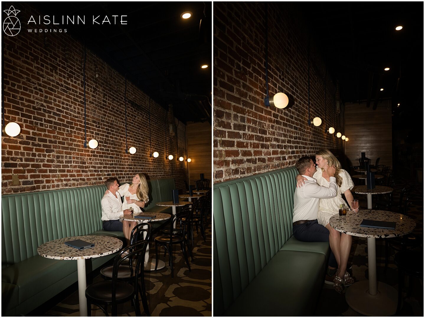 This romantic downtown Pensacola engagement session at The Well was one for the books – moody, sexy, and filled with the kind of chemistry you can’t fake. Tucked inside one of the city’s most intimate spaces, Sarah and Brett leaned all the way into the vibe: sultry lighting, craft cocktails, and a spark that lit up every frame.