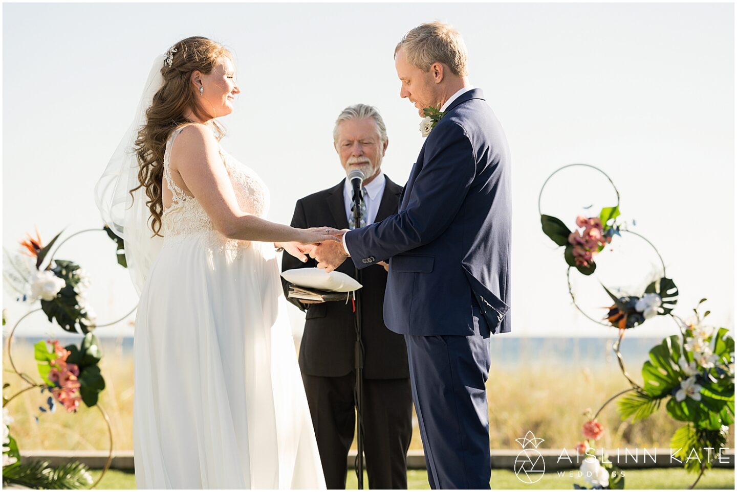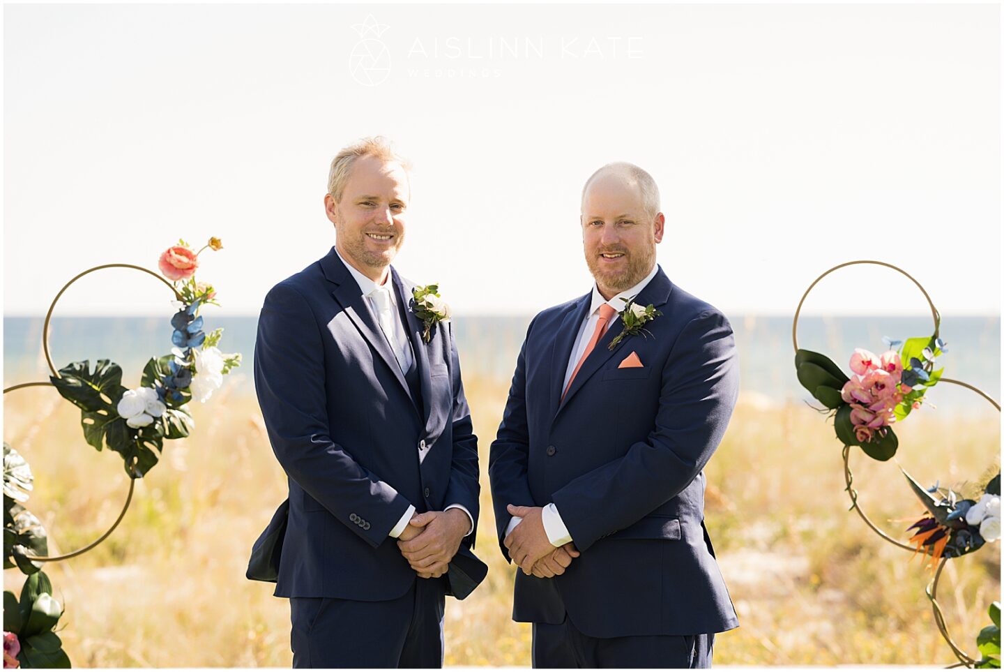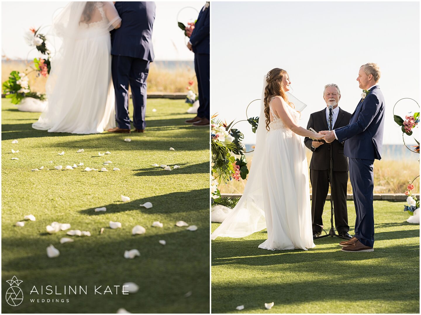 The morning began with laughter as Sara got ready with her bridal party. Meanwhile, Palmer adjusted his dark blue tux, his look sharp and coastal. Sara’s gown flowed with beautiful lace details. Each swirl of fabric added charm. However, nothing outshone her smile – she glowed with joy.