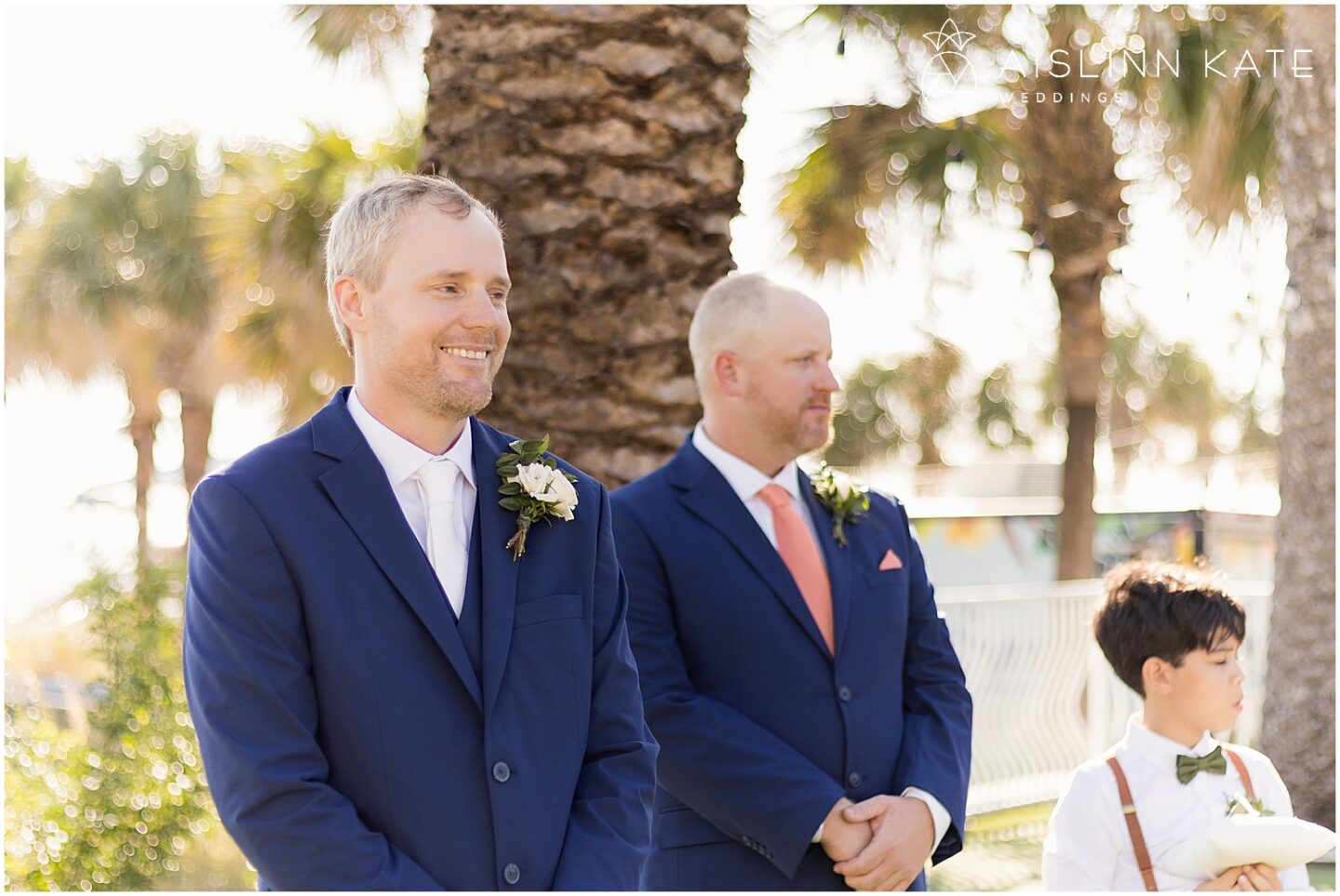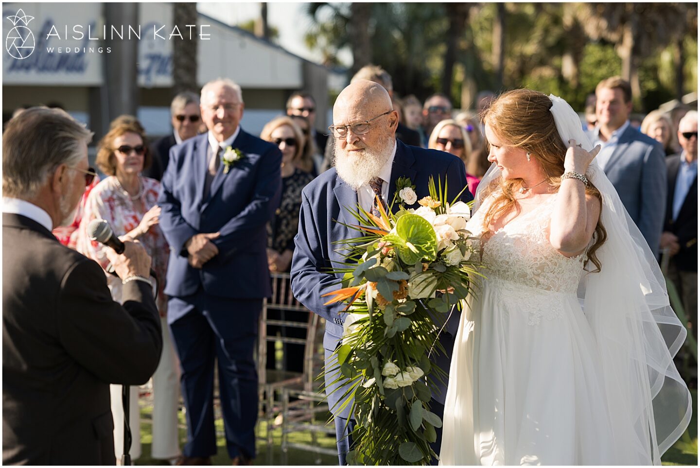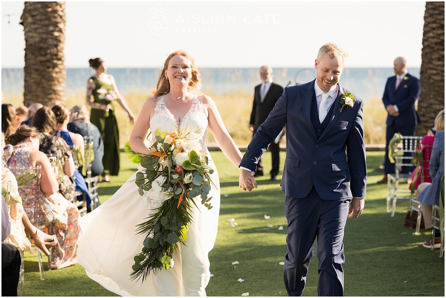 Sara and Palmer chose The Island Resort in Ft. Walton, Florida for their Gulf Coast beachside wedding. The choice felt perfect. While the sun shimmered over the water, gentle waves rolled in and warm breezes drifted through the palms. The whole setting captured their fun and relaxed style. Moreover, friends cheered as the couple arrived. The mood stayed lighthearted from the very start.