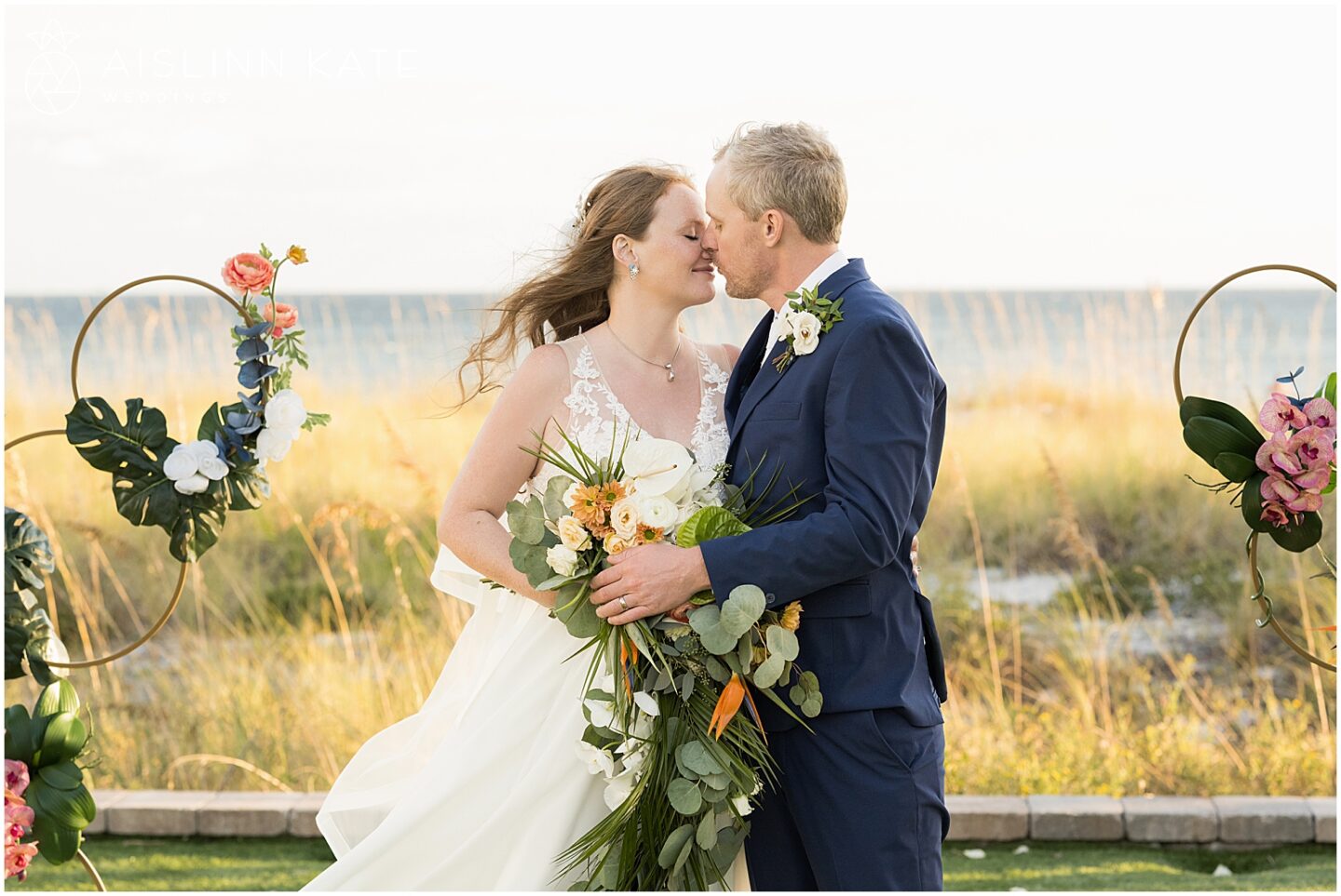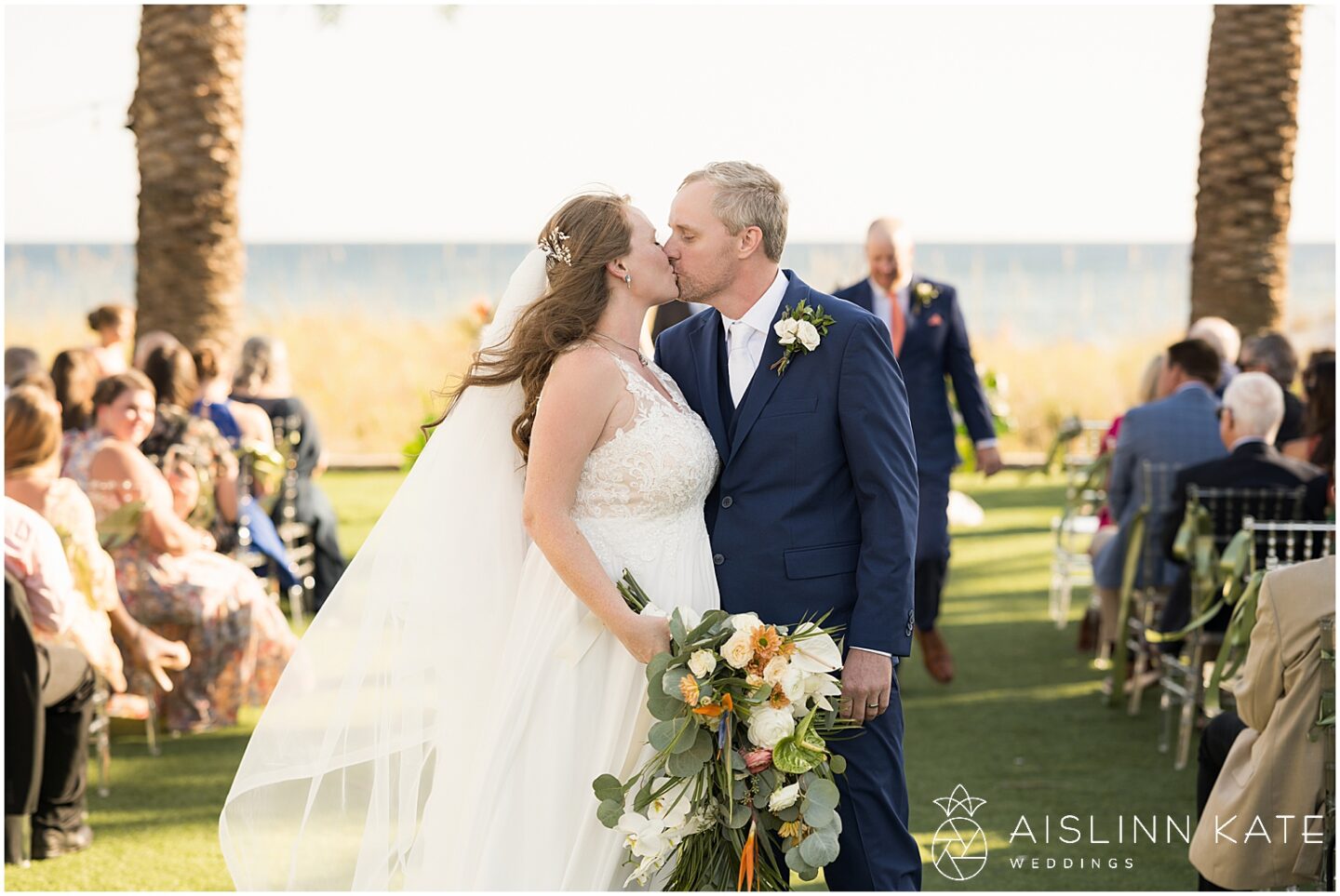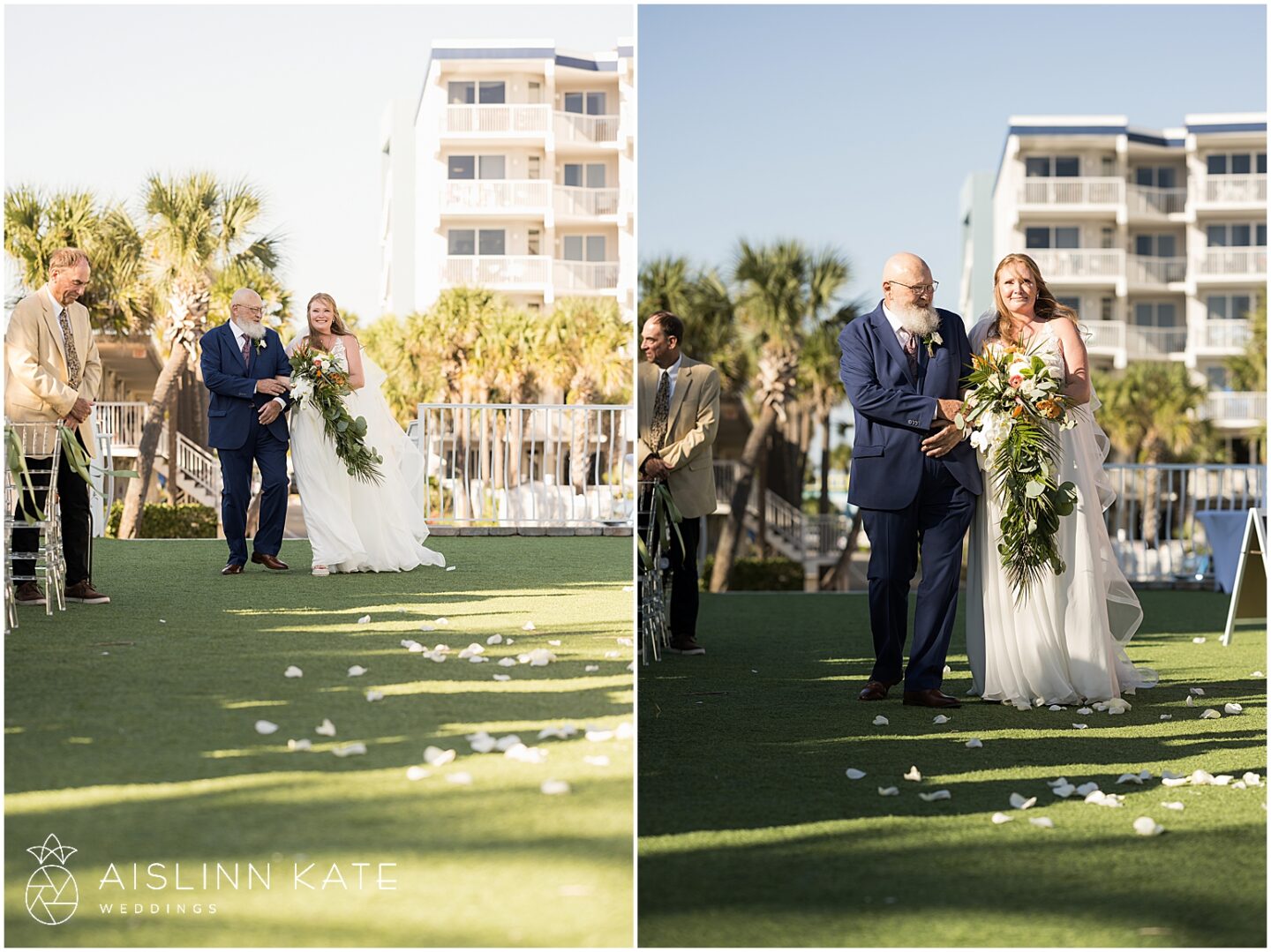 Sara and Palmer chose The Island Resort in Ft. Walton, Florida for their Gulf Coast beachside wedding. The choice felt perfect. While the sun shimmered over the water, gentle waves rolled in and warm breezes drifted through the palms. The whole setting captured their fun and relaxed style. Moreover, friends cheered as the couple arrived. The mood stayed lighthearted from the very start.