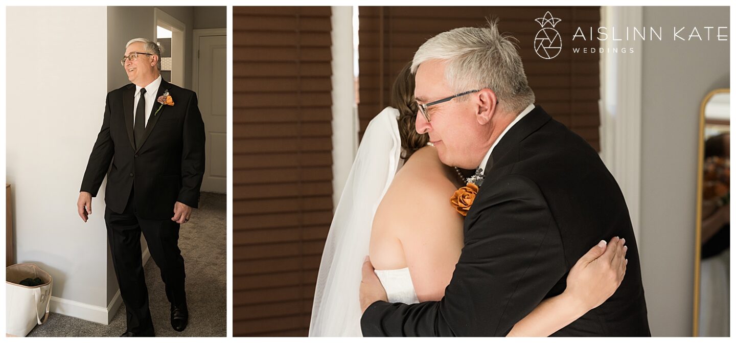 Claire opted to have a first look with her father on the wedding day, a choice that I always enjoy being able to photograph! There is something so moving about a father seeing his daughter in her wedding dress for the first time. Claire’s father was overjoyed to see his daughter as a beautiful bride, and was even more elated when Claire gifted him a handkerchief with a personal message she had embroidered onto it herself. Such a beautifully sincere moment!