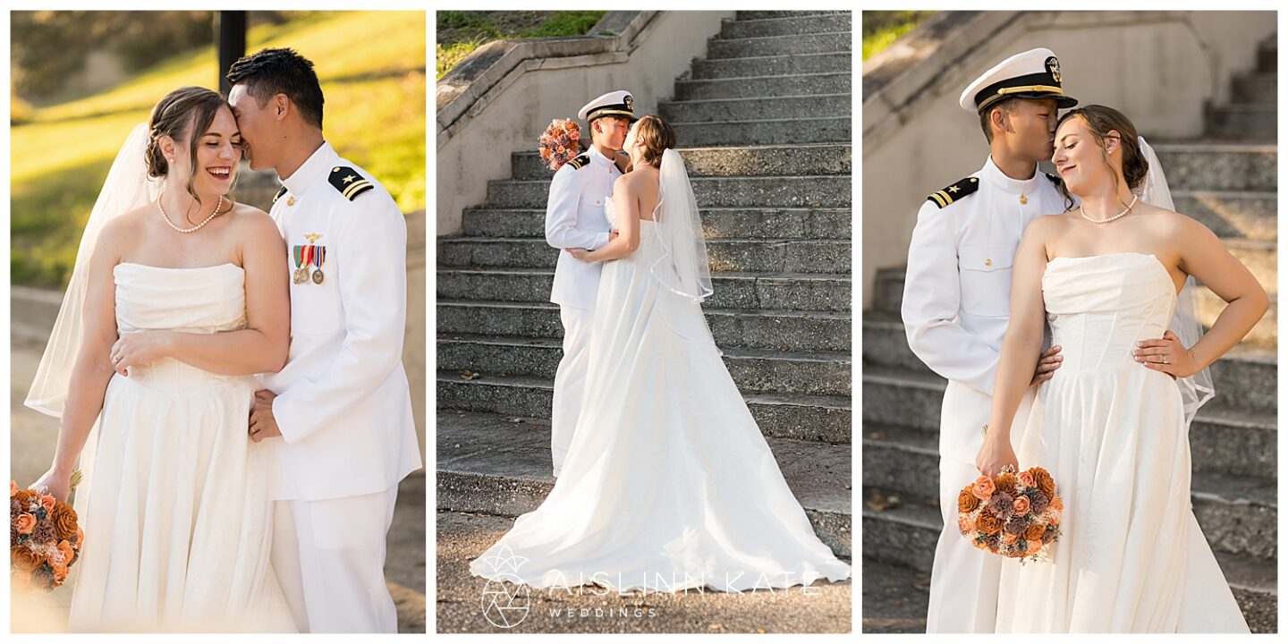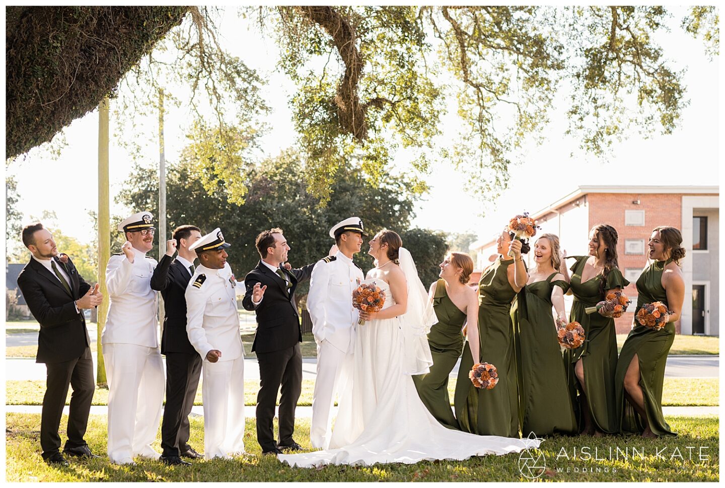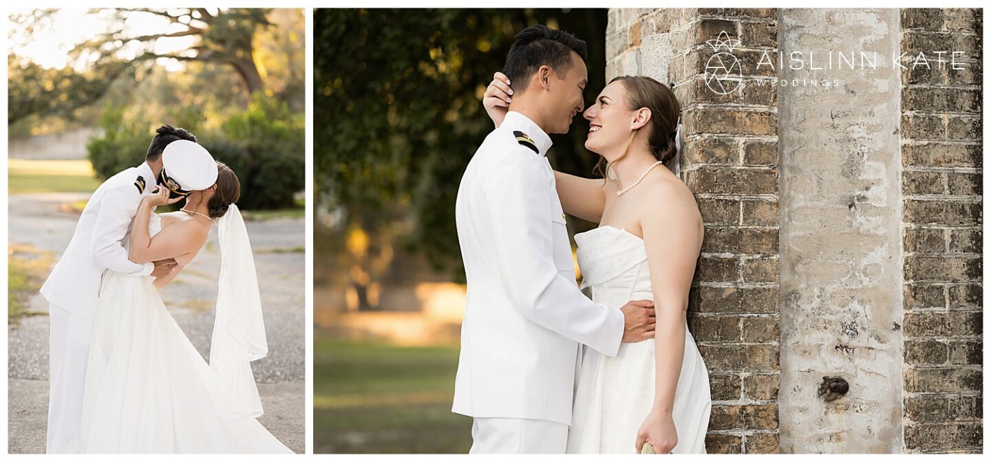 Claire and Teddy were so lucky to have the best weather the gulf coast has to offer for their wedding day! The skies were clear, the breeze was cool and gentle, and the air was just perfect. Although both the ceremony and reception were indoors the weather was perfect for wedding party and couples photos outside. The clear skies made for the most beautiful golden light during their couple’s session with a gorgeous sunset that guests got to enjoy before heading in to party the night away!