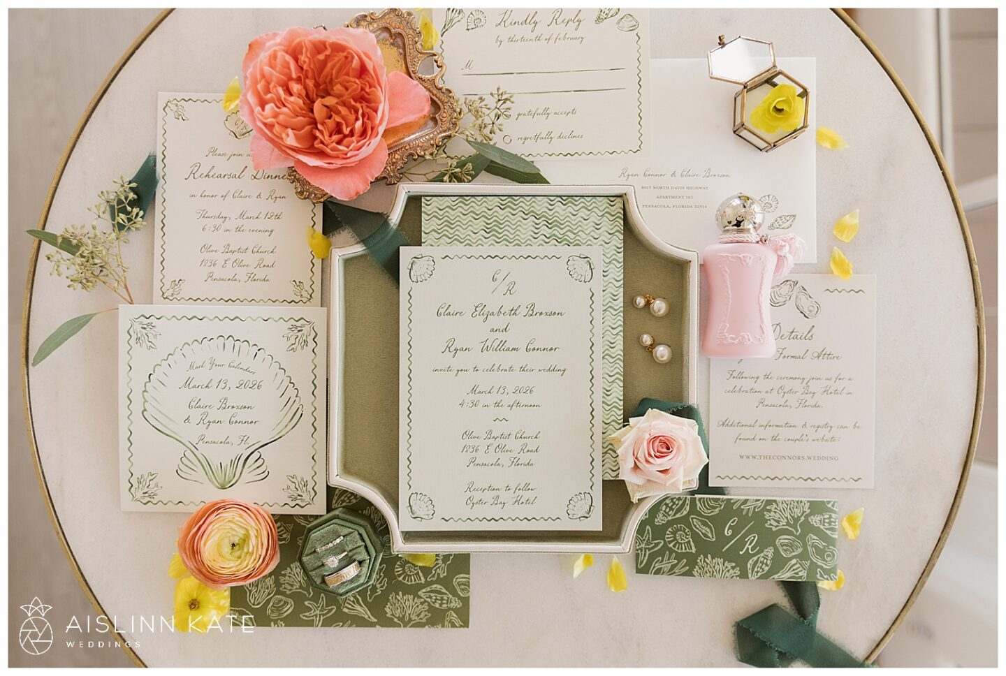 Claire and Ryan brought their vision of a romantic garden party wedding to life during their early spring celebration at Oyster Bay Boutique Hotel in Pensacola, Florida. From the very beginning, they embraced the season with intention, choosing a vibrant color palette and lush floral design that instantly set a joyful and inviting tone. Bright blooms in shades of coral, blush, yellow, and soft blue filled every corner, creating a fresh, whimsical atmosphere that felt both elevated and effortlessly relaxed.